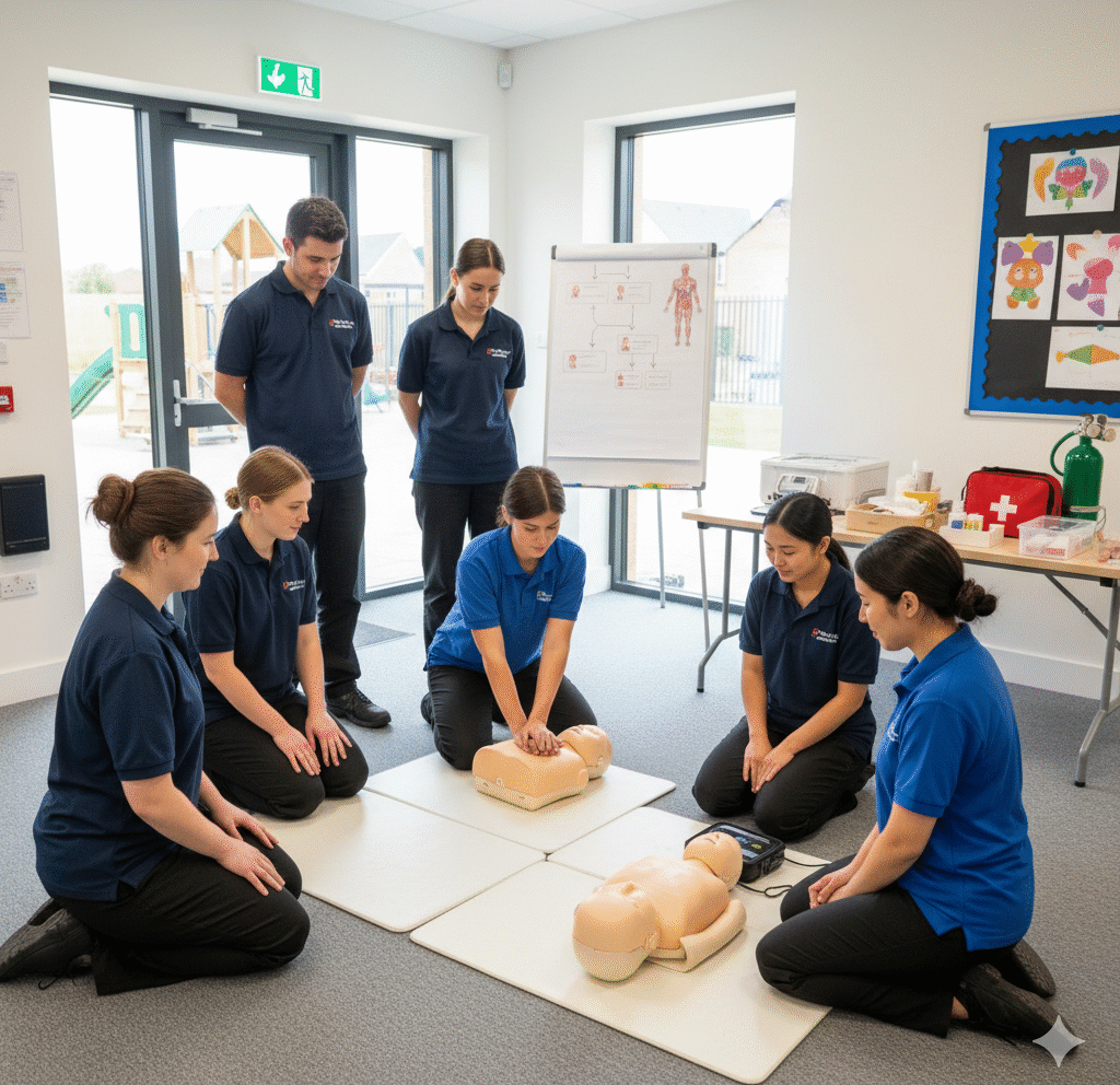 The Paediatric First Aid (PFA) Course for Children’s Residential Care provides staff with the essential knowledge, skills, and confidence needed to respond to accidents, illnesses, and life-threatening emergencies involving infants, children, and young people. Aligned with the Children’s Homes Regulations 2015 (Reg 31), Health & Safety (First Aid) Regulations 1981, RIDDOR, and Ofsted SCCIF, this course teaches staff how to conduct primary assessments, deliver CPR, use an AED, manage choking, respond to seizures, asthma, anaphylaxis, diabetes, bleeding, shock, burns, and childhood-specific emergencies such as drowning and poisoning.